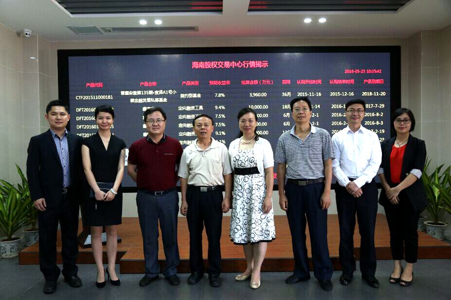 5月25日,省國資委國有企業(yè)監(jiān)事會主席彭修益一行蒞臨海南股權(quán)交易中心,詳細(xì)了解股交中心成立以來的運(yùn)營狀況及未來發(fā)展規(guī)劃,并對中心下一步工作開展做了指導(dǎo)。