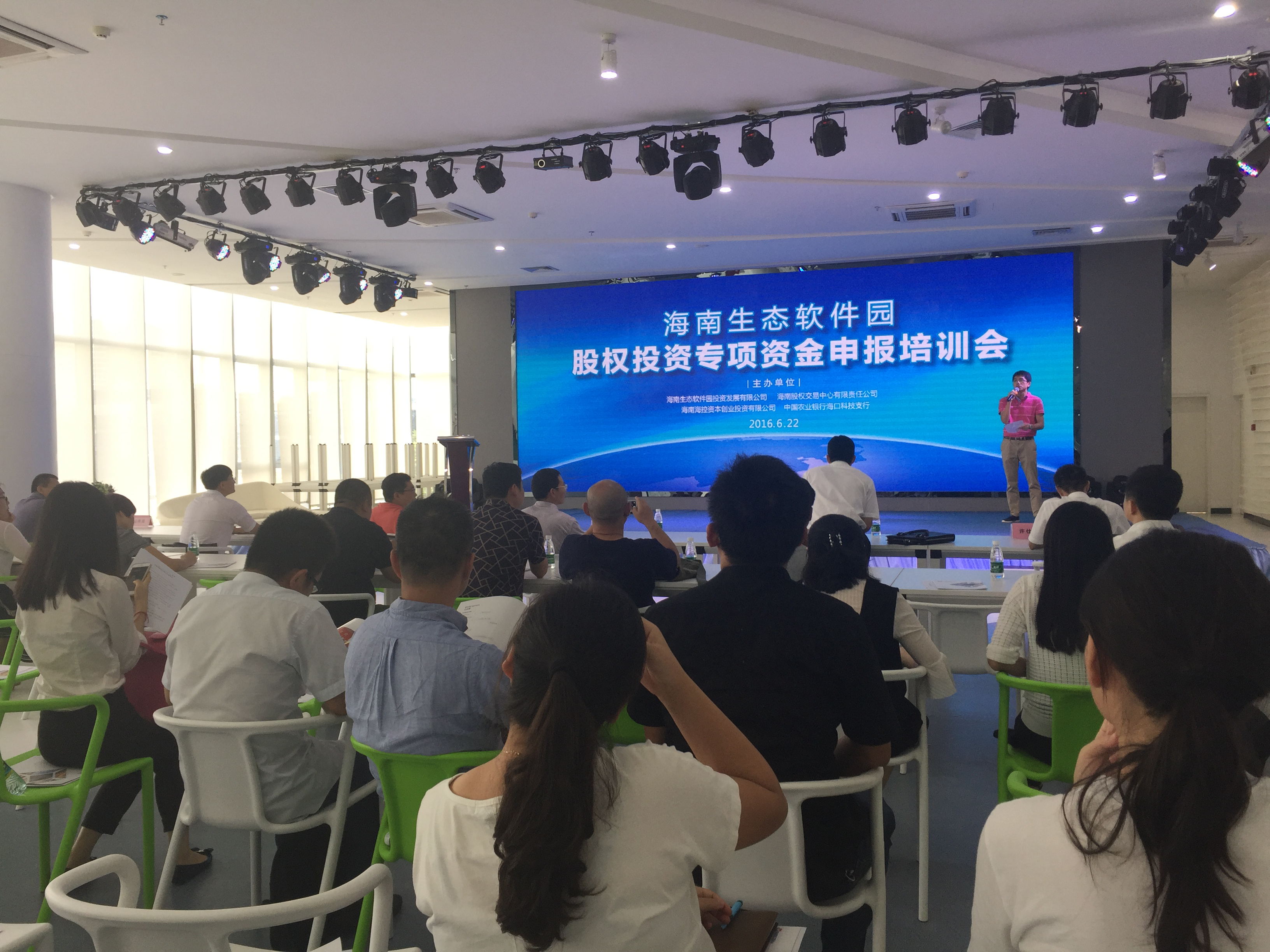 6月22日下午,海南股權(quán)交易中心聯(lián)合海南生態(tài)軟件園,在海南老城經(jīng)濟開發(fā)區(qū)海南生態(tài)軟件園綜合展示中心,舉辦了針對園區(qū)注冊企業(yè)的股權(quán)投資專項資金申報培訓(xùn)會。25家企業(yè)代表參加了本次培訓(xùn)班。