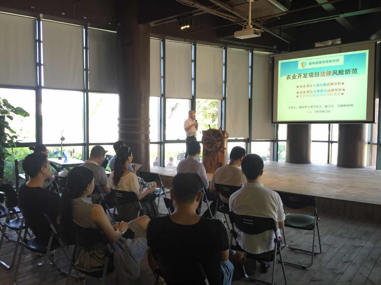 本次培訓(xùn)主題為“農(nóng)業(yè)開發(fā)項(xiàng)目法律風(fēng)險(xiǎn)防范”,肖律師從農(nóng)業(yè)項(xiàng)目土地問題法律評(píng)析、農(nóng)業(yè)項(xiàng)目眾籌模式法律評(píng)析和農(nóng)業(yè)項(xiàng)目投資評(píng)估風(fēng)險(xiǎn)管理三部分展開培訓(xùn),開頭詳細(xì)介紹了與農(nóng)業(yè)項(xiàng)目開發(fā)相關(guān)的土地法律法規(guī)和土地使用法律風(fēng)險(xiǎn),并伴以生動(dòng)翔實(shí)的案例為在場(chǎng)企業(yè)代表作了說明。緊接著,肖律師從眾籌的平臺(tái)型、消費(fèi)型和權(quán)益型三大類商業(yè)模式講解農(nóng)業(yè)眾籌,闡述了農(nóng)業(yè)大投資、長(zhǎng)周期、高風(fēng)險(xiǎn)的行業(yè)屬性。最后,肖律師從農(nóng)業(yè)項(xiàng)目投資管理風(fēng)險(xiǎn)特征、風(fēng)險(xiǎn)類型和防范對(duì)策幫助企業(yè)詳細(xì)了解國(guó)家政策傾斜、資金投入和銀行信貸扶持對(duì)農(nóng)企發(fā)展的重要性。