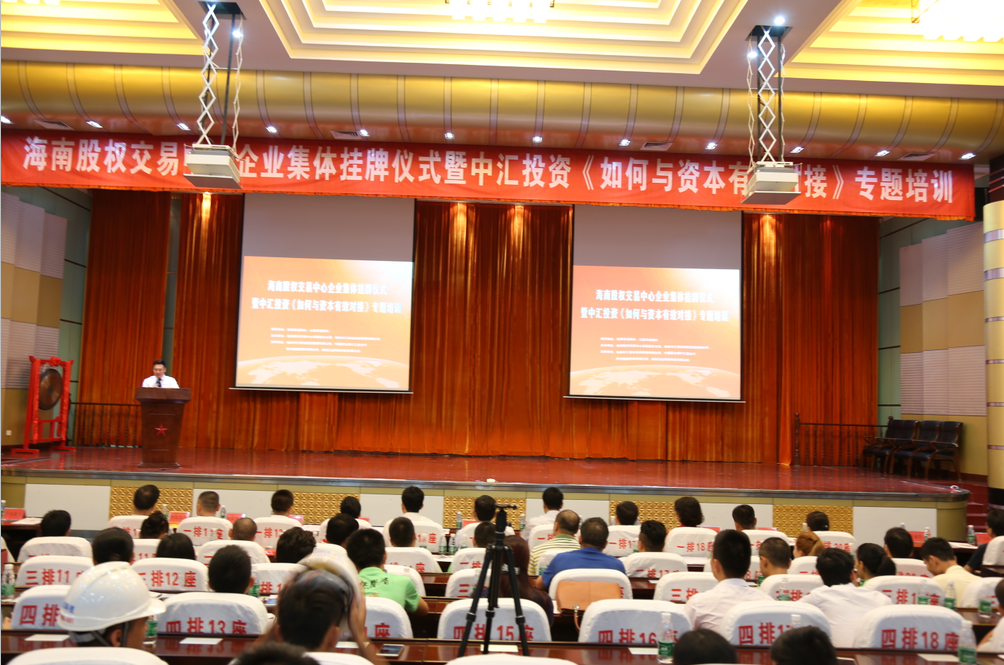 8月12日上午,在海南省和三亞市金融辦共同指導(dǎo)下,海南股權(quán)交易中心聯(lián)合海南中匯創(chuàng)業(yè)投資管理有限公司,在三亞市委黨校舉辦企業(yè)集體掛牌儀式暨“如何與資本有效對(duì)接”專題培訓(xùn)活動(dòng)。