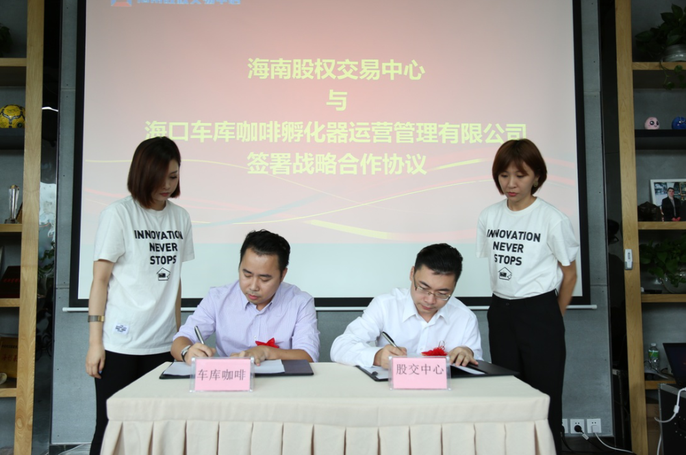 隨后,海南股權(quán)交易中心與海口車庫咖啡共同簽訂了戰(zhàn)略合作協(xié)議,就進(jìn)一步加強(qiáng)合作達(dá)成初步意向。