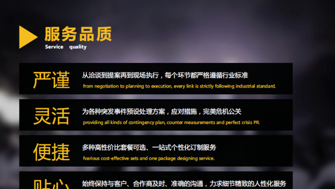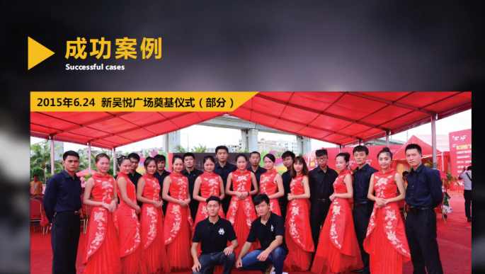 | 企業(yè)說明: | 博峰文化傳播有限公司(下文統(tǒng)稱為博峰)是一家致力于提供文化傳播類服務(wù)的專業(yè)機構(gòu),我們承接慶典活動、商務(wù)會議、高端晚宴、文藝匯演等,能為公益、商業(yè)、娛樂等各類性質(zhì)的文化傳播活動提供一站式服務(wù)。博峰善于整合已有的資源,創(chuàng)立至今已有自己較為完善的團隊,我們提供全程的策劃執(zhí)行、優(yōu)質(zhì)的演繹資源和高端的舞美設(shè)備;我們不斷進步,致力于發(fā)展成為管理體制健全、富有創(chuàng)造力、客戶信賴、享譽業(yè)界的文化傳播服務(wù)公司。 博峰以??谑凶鳛楣窘?jīng)營服務(wù)的重點,公司經(jīng)營服務(wù)范圍向三亞市輻射擴大。博峰作為文化傳播公司,主要為公司、團體、政府,個人提供各類傳播活動。公司經(jīng)營范圍大致分為5類,分別為演出經(jīng)紀類、品牌推廣類、展覽展示類、慶典類、模特禮儀類,博峰主要以品牌推廣類、展覽展示類、慶典類3項創(chuàng)意技術(shù)類項活動為主。