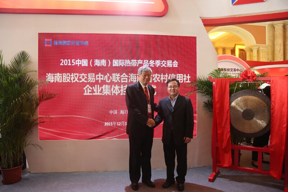 1212日,由農(nóng)業(yè)部、海南省人民政府、中華全國供銷合作總社和中國國際貿(mào)易促進(jìn)委員會(huì)共同主辦的“2015年中國(海南)國際熱帶農(nóng)產(chǎn)品冬季交易會(huì)在海南國際會(huì)展中心盛大開幕。海南股權(quán)交易中心作為農(nóng)業(yè)金融服務(wù)館四家參展的金融機(jī)構(gòu)之一,與??谵r(nóng)村商業(yè)銀行共同參與了此次盛會(huì)。現(xiàn)場(chǎng)30家農(nóng)企集體掛牌海南股交中心。