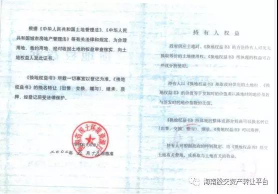 海南省儋州市《換地權(quán)益書》債權(quán)轉(zhuǎn)讓公告