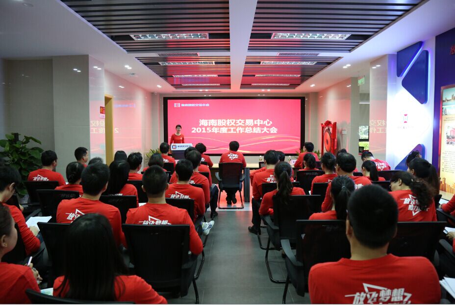 1月7日下午,新年伊始,海南股權(quán)交易中心在海南老城經(jīng)濟(jì)開發(fā)區(qū)海南生態(tài)軟件園B13號(hào)樓召開了2015年度工作總結(jié)會(huì)議。會(huì)議對(duì)2015年度工作進(jìn)行總結(jié),并對(duì)2016年工作做了規(guī)劃,股交中心董事長(zhǎng)李曉剛,總裁班淼琦,副總裁吳惠玉、陸瑋、程棟才,以及股交中心海南、北京、上海、深圳四地的全體員工參加了本次會(huì)議。