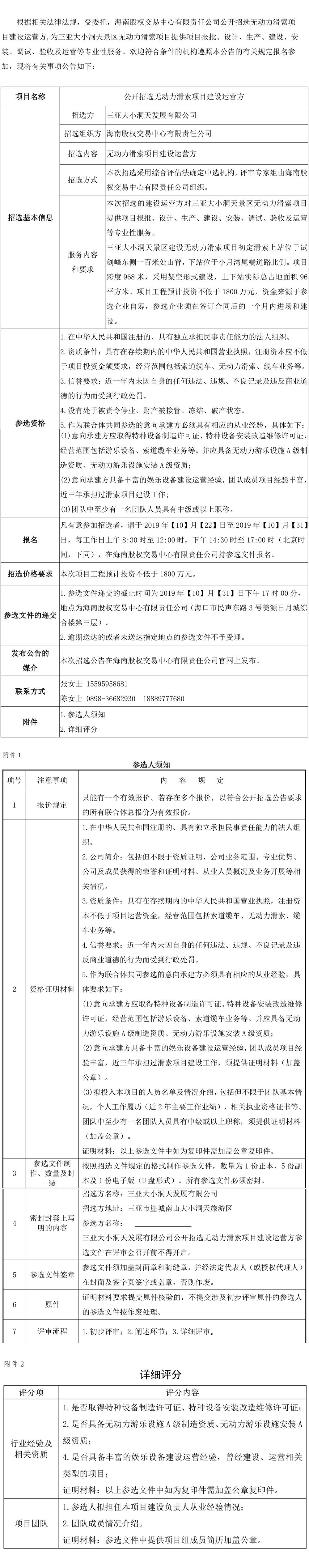 三亞大小洞天發(fā)展有限公司公開招選無動力滑索項目建設(shè)運(yùn)營方