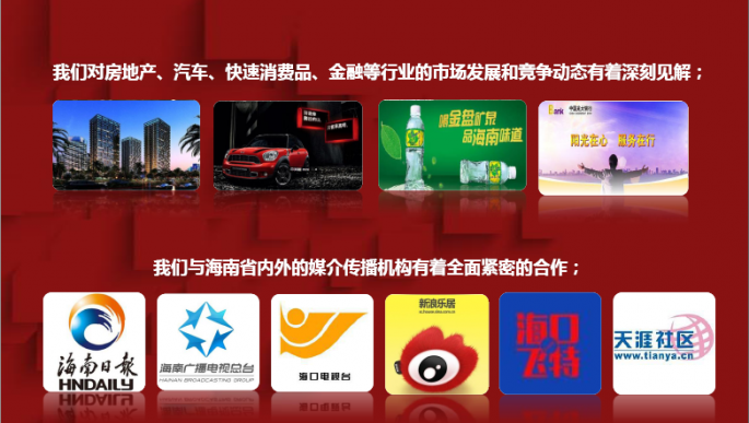 | 企業(yè)說明: | 海南行走視界房地產(chǎn)營銷策劃有限公司成立于2014年,是一家集房地產(chǎn)企劃、銷售、活動推廣、市場研究于一體的專業(yè)化綜合性服務(wù)公司。公司以房地產(chǎn)營銷活動策劃和執(zhí)行為主營業(yè)務(wù),同時兼顧房地產(chǎn)項目的市場調(diào)研、產(chǎn)品定位、銷售管理、銷售執(zhí)行、推廣策略、廣告創(chuàng)意設(shè)計、媒介服務(wù)、公關(guān)活動等單獨或分類結(jié)合的業(yè)務(wù)開展。 公司積極提升專業(yè)操作水平與項目服務(wù)能力,專業(yè)影響力不斷擴展,樹立了良好的品牌形象。目前公司服務(wù)區(qū)域以??跒橹行模椛浜D掀渌锌h。 公司以誠信、速度、創(chuàng)新為理念,秉承專業(yè)市場操作路線,以縝密而完備的市場情況的掌握,提供最適合的策略方案,進行最有效的行銷推廣,熟悉房地產(chǎn)運作模式,能及時準(zhǔn)確提供專業(yè)的指導(dǎo)意見和銷售建議。