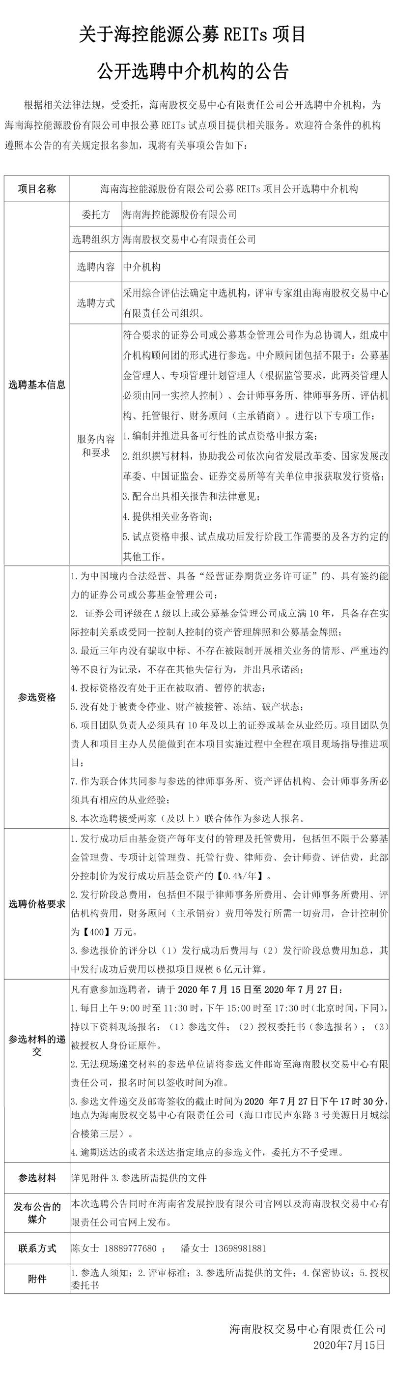 關于??啬茉垂糝EITs項目公開選聘中介機構的公告
