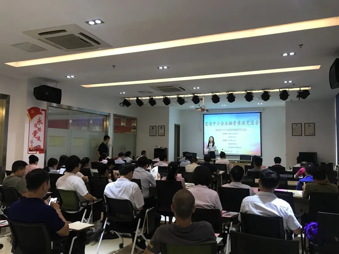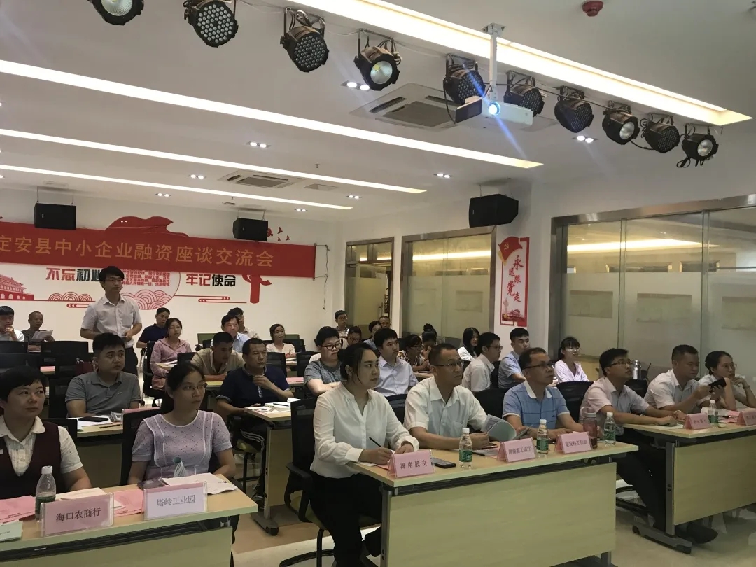 海南省工業(yè)和信息化廳、定安縣科工信局、定安塔嶺工業(yè)園等相關(guān)部門、園區(qū)負(fù)責(zé)人,中國(guó)農(nóng)業(yè)銀行、中國(guó)建設(shè)銀行、中國(guó)郵儲(chǔ)銀行、海南銀行、??谵r(nóng)商行、??谑腥谫Y擔(dān)保、海金控?fù)?dān)保、信聯(lián)盛擔(dān)保、定安擔(dān)保等金融機(jī)構(gòu)代表及定安中小企業(yè)代表共約50人參加交流會(huì)。
