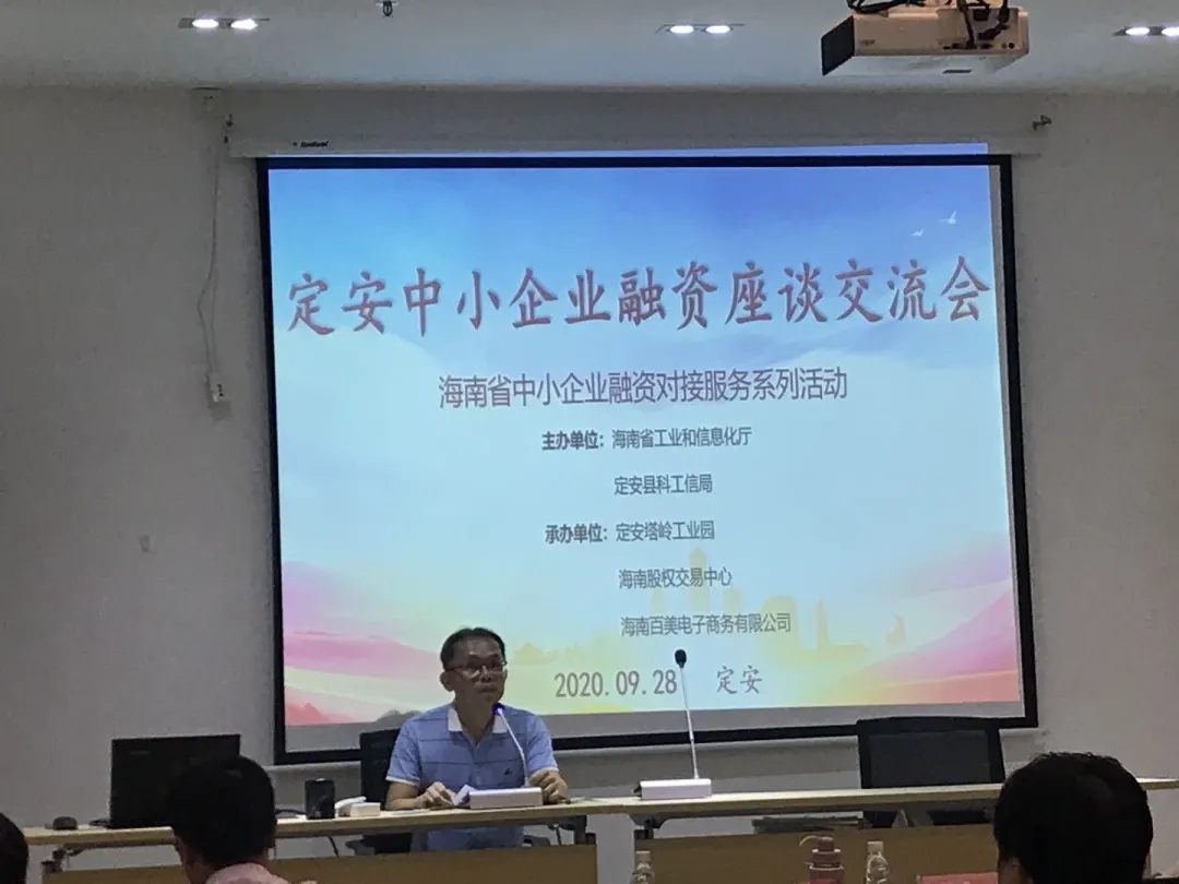 9月28日下午,由海南省工業(yè)和信息化廳、定安縣科工信局主辦,海南股交、定安塔嶺工業(yè)園、海南百美電子商務(wù)有限公司聯(lián)合承辦的“定安縣中小企業(yè)融資座談交流會(huì)”在定安舉辦。