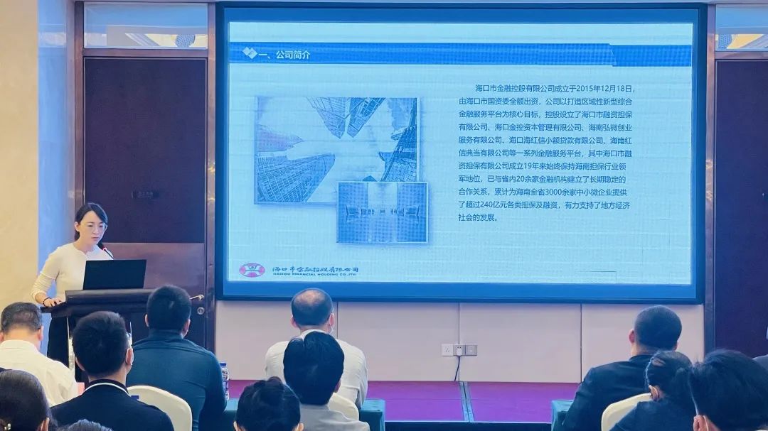 隨后,海口市金融控股有限公司介紹了投貸聯(lián)動(dòng)等信貸產(chǎn)品,對(duì)投貸聯(lián)動(dòng)綜合金融服務(wù)開展情況及產(chǎn)品優(yōu)勢(shì)進(jìn)行了分析說明,就如何更好地運(yùn)用政府金融政策、發(fā)揮特色金融產(chǎn)品優(yōu)勢(shì)、合作推進(jìn)投貸聯(lián)動(dòng)業(yè)務(wù)支持中小企業(yè)融資進(jìn)行了詳細(xì)介紹。