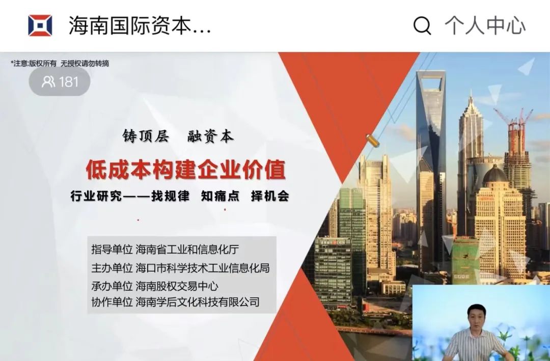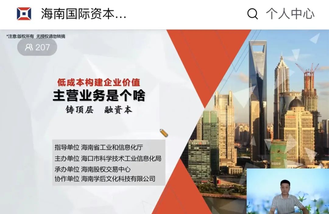 中小企業(yè)是經(jīng)濟(jì)和社會(huì)發(fā)展的主力軍,在促進(jìn)增長(zhǎng)、保障就業(yè)、活躍市場(chǎng)、改善民生等方面發(fā)揮著重要作用。近年來(lái),??谑形姓叨戎匾曃沂兄行∑髽I(yè)的發(fā)展。為營(yíng)造我市中小企業(yè)發(fā)展良好環(huán)境,加快推動(dòng)我市中小企業(yè)實(shí)現(xiàn)高質(zhì)量發(fā)展,海南股交緊密結(jié)合海口市科工信局工作部署,根據(jù)我市中小企業(yè)發(fā)展需求,從2022年12月起連續(xù)開(kāi)展多場(chǎng)次的企業(yè)發(fā)展系列培訓(xùn)活動(dòng)。