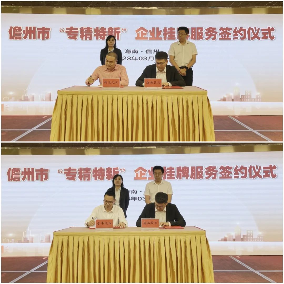 隨后,海南股交分別與儋州市“專精特新”企業(yè)代表儋州偉達化工有限公司、海南合豐運維科技有限公司兩家企業(yè)簽訂掛牌服務(wù)協(xié)議,后續(xù)將在企業(yè)改制、投融資、培訓(xùn)、咨詢等方面為兩家企業(yè)提供深度服務(wù),助力企業(yè)規(guī)范、快速發(fā)展。