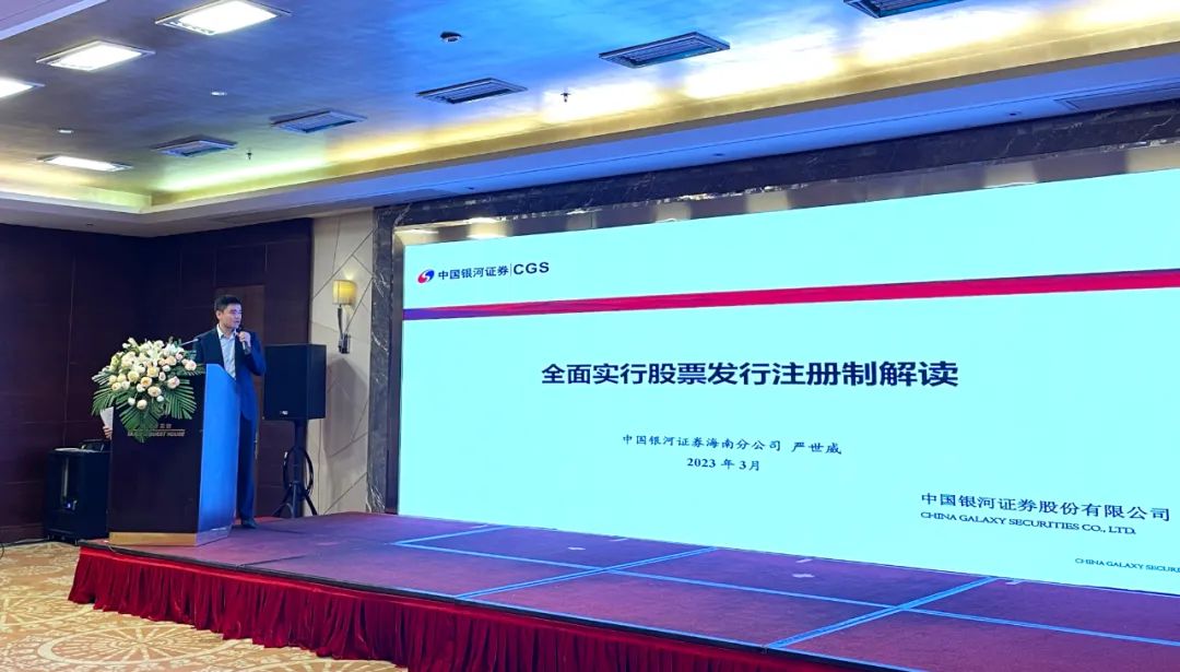 在培訓(xùn)環(huán)節(jié),培訓(xùn)由中國銀河證券海南分公司帶來“全面實行股票發(fā)行注冊制解讀”主題講座。授課導(dǎo)師圍繞上市培育全過程,從“注冊制改革概況、上市(掛牌)規(guī)則解讀、海南中小企業(yè)資本市場路徑”等幾個方向,以理論結(jié)合案例的方式進行了系統(tǒng)講解,全面分析注冊制改革背景下,我省中小企業(yè)在上市中的機遇與挑戰(zhàn)。主辦方向參會企業(yè)代表發(fā)放《上市掛牌政策匯編》,幫助企業(yè)更好的了解我國多層次資本市場的上市要求。