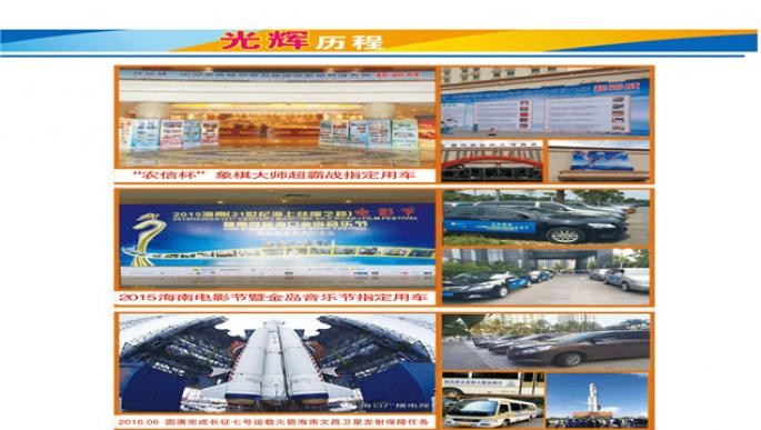 一份耕耘,一份收獲,公司自成立以來(lái),先后為歷屆博鰲亞洲論壇、金磚國(guó)家會(huì)議,海南高爾夫球博覽會(huì)、電影[非誠(chéng)勿擾]拍攝等提供用車(chē)保障服務(wù),獲得了客戶的一致認(rèn)可和社會(huì)各界的廣泛好評(píng),多次受到用車(chē)單位及政府有關(guān)部門(mén)的嘉獎(jiǎng)和表?yè)P(yáng),公司已太陽(yáng)一般的熱情、大海一般的胸懷,迎接著來(lái)自國(guó)內(nèi)外的游客,打造專(zhuān)屬于您的高品質(zhì)行程,為建設(shè)海南國(guó)際旅游島貢獻(xiàn)我們的力量。