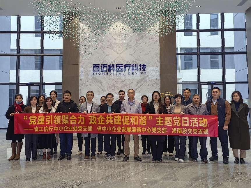 12月21日下午,省工信廳中小企業(yè)處黨支部、省中小企業(yè)發(fā)展服務(wù)中心黨支部、海南股交黨支部赴定安縣海南百邁科生物醫(yī)療科技股份有限公司開展“黨建引領(lǐng)聚合力、政企共建促和諧”主題黨日活動(dòng)。