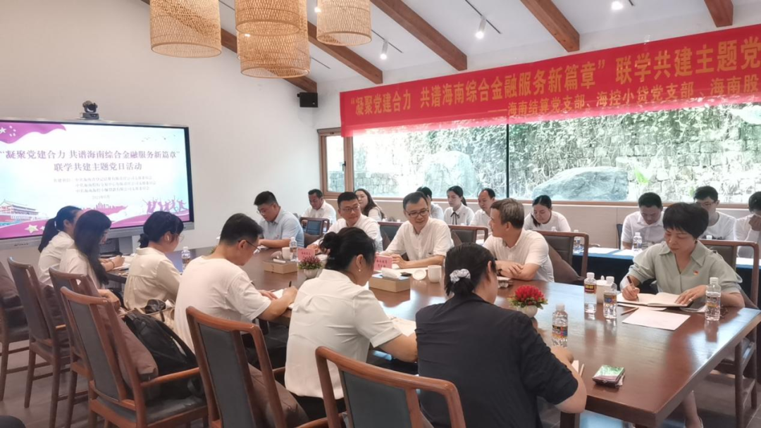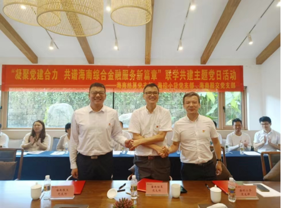 海南結(jié)算黨支部書記、董事長文于佳,??匦≠J黨支部書記、董事長潘沖,海南股交黨支部書記、董事長朱磊,以及各支部黨員同志、干部職工參加本次活動。