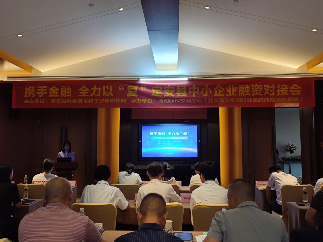 此次活動(dòng)由定安縣科工信局主辦、海南股權(quán)交易中心承辦。定安縣科工信局、定安縣農(nóng)業(yè)農(nóng)村局、定安縣旅文局、定安縣工商業(yè)聯(lián)合會(huì)、金融機(jī)構(gòu)相關(guān)負(fù)責(zé)人及企業(yè)代表近50人參加會(huì)議。