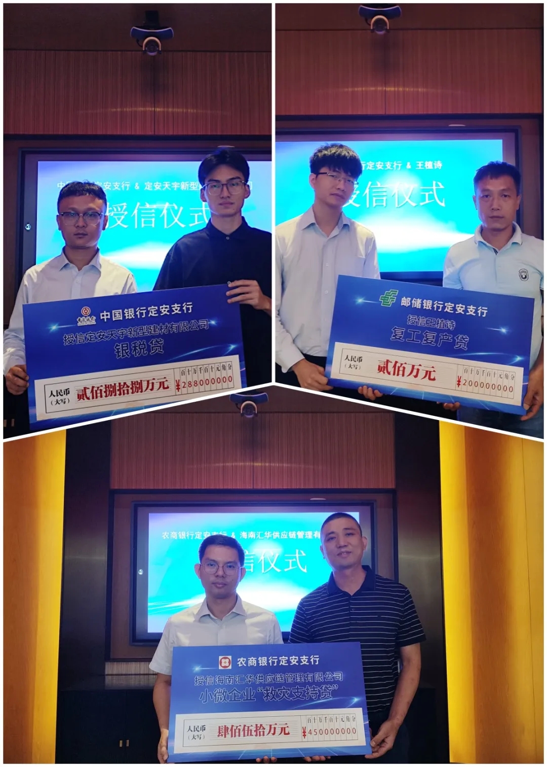 為幫助定安企業(yè)提供金融支持,中國銀行、中國建設(shè)銀行、中國農(nóng)業(yè)銀行、中國郵儲(chǔ)銀行、海南農(nóng)商行、海南銀行等金融機(jī)構(gòu)分別介紹了各自專屬的金融產(chǎn)品和服務(wù),并就救災(zāi)貸、復(fù)工復(fù)產(chǎn)貸及開通融資綠色通道的申請(qǐng)條件、辦理流程、貸款額度、貸款期限、貸款利率和政府貼息等問題進(jìn)行了詳細(xì)介紹。