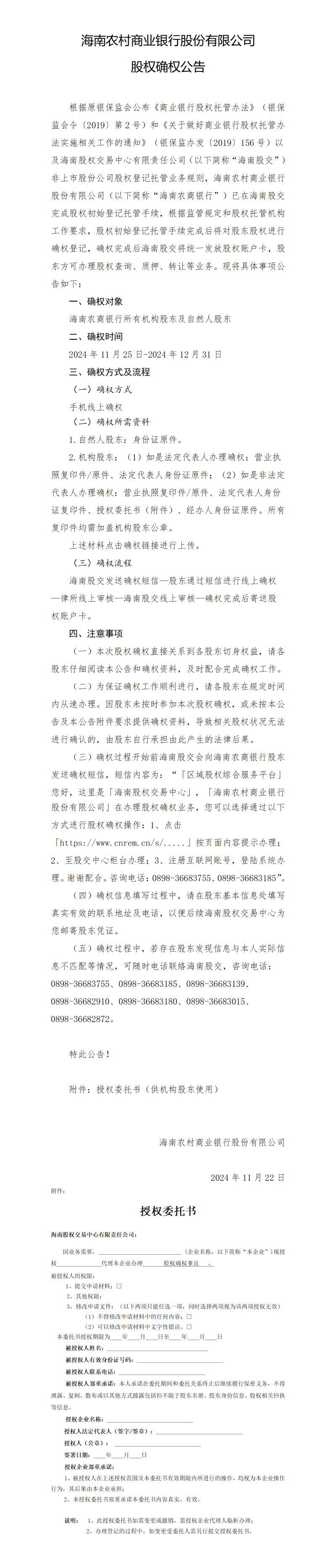 海南農村商業(yè)銀行股份有限公司股權確權公告