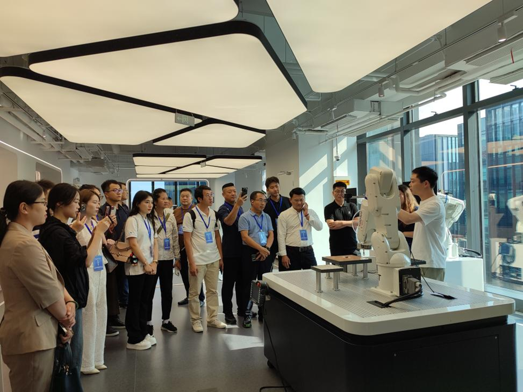 下午,企業(yè)代表前往上海太敬機(jī)器人,體驗(yàn)人工智能與機(jī)器人技術(shù)的前沿應(yīng)用。上海太敬機(jī)器人有限公司是一家模擬機(jī)器人科技文化公司,開(kāi)展從機(jī)器人研發(fā)、制造到對(duì)適齡人群進(jìn)行教育、培訓(xùn)等多種服務(wù)。通過(guò)展廳參觀、機(jī)器人表演及實(shí)操互動(dòng)環(huán)節(jié),企業(yè)代表不僅拓寬科技視野,也感受到智能制造業(yè)的迅猛發(fā)展與跨界融合的可能。