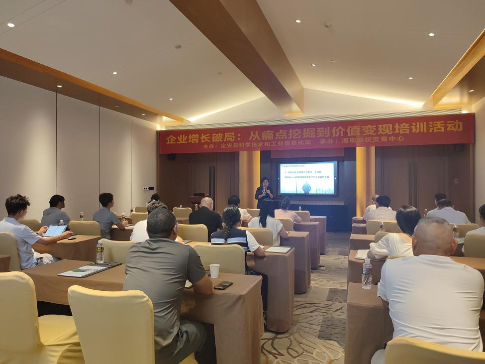 為助力本地中小企業(yè)應對市場挑戰(zhàn),突破增長瓶頸,10月14日,由定安縣科學技術和工業(yè)信息化局主辦、海南股權交易中心承辦的“企業(yè)增長破局:從痛點挖掘到價值變現(xiàn)”專題培訓活動,在定安成功舉辦。本次活動吸引了定安縣眾多中小企業(yè)負責人及管理者參與。